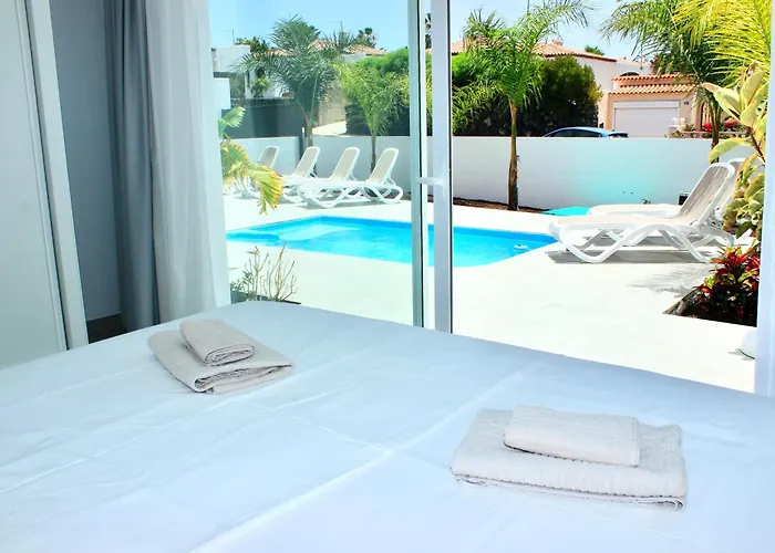 De 3-slaapkamer Vila Amalie - 3Bdr+3 Bath In Amarilla Golf Villa nodigt gasten uit om te genieten van een terras mey een zwembad en ligt op slechts een korte loopafstand van Golf del sur. Deze villa biedt Wi-Fi en bevindt zich op korte rijafstand van 10 minuten van Calle Montana Amarilla.